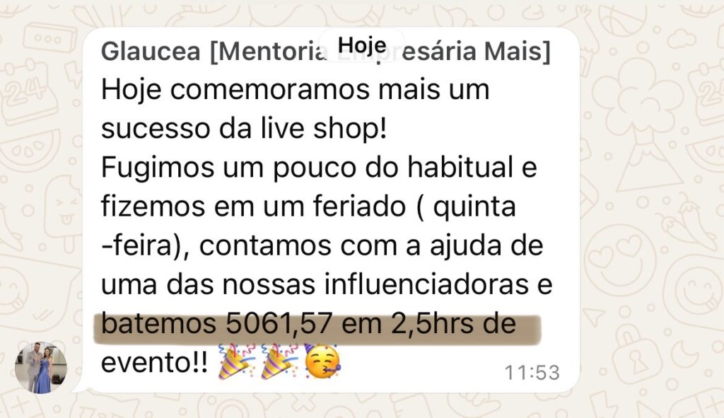 Minha loja se tornou referência, aplicando estratégias que nasceram no chão da loja — atendendo cliente, vendendo no WhatsApp, organizando campanhas, repondo produtos e testando ações todos os dias.